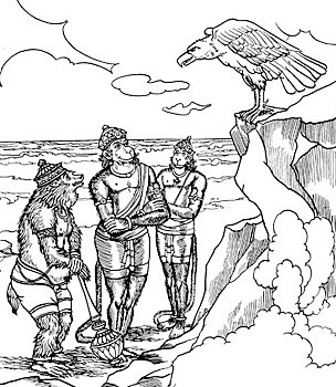 ಆಗ ನನ್ನ ಈ ರೆಕ್ಕೆಗಳು ಸುಟ್ಟುಹೋಗಿದ್ದವು. ಆದರೆ ಜಟಾಯುವಿನವು ಸುಡಲಿಲ್ಲ. ಆಗ ಬಹಳ ಸಮಯದಿಂದ ನನಗೆ ಕಾಣದಿದ್ದ ನನ್ನ ಪ್ರಿಯ ತಮ್ಮನು ಹದ್ದುಗಳ ರಾಜನಾದನು. ರೆಕ್ಕೆಗಳು ಸುಟ್ಟುಹೋದ ನಾನು ಈ ಮಹಾಗಿರಿಯ ಮೇಲೆ ಬಿದ್ದೆ.”