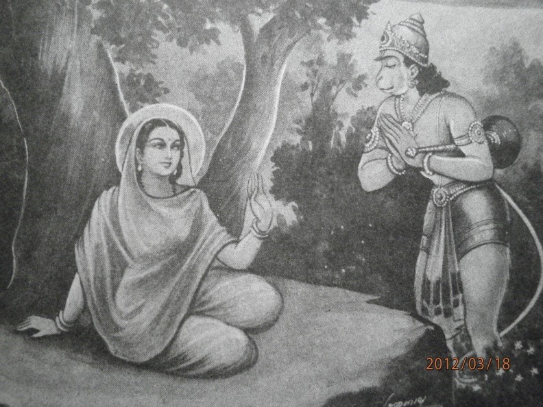 ಎಲ್ಲ ಕಪಿಗಳೊಂದಿಗೆ ನಿನ್ನ ಪತಿಯು ಶೀಘ್ರದಲ್ಲಿಯೇ ಬರುತ್ತಾನೆ. ದೇವಿ! ನನ್ನ ಮೇಲೆ ನಂಬಿಕೆಯನ್ನಿಡು. ನಾನು ವಾನರ. ರಾಕ್ಷಸನಲ್ಲ.”