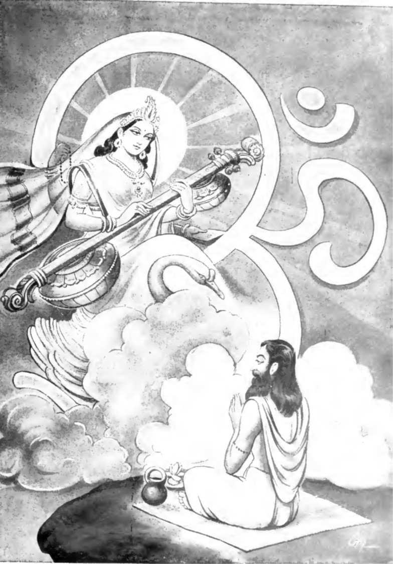 ಆಗ ಅತಿಶುಭ ಸ್ವರವ್ಯಂಜನ ವಿಭೂಷಿತ ಓಂಕಾರವನ್ನು ಉಚ್ಚರಿಸುತ್ತಾ ದೇವೀ ಸರಸ್ವತಿಯು ನನ್ನ ಮುಂದೆ ನಿಂತಳು.